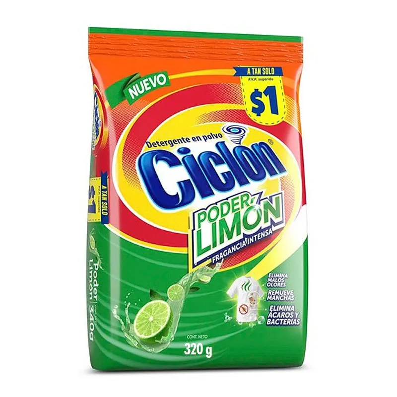 Detergente en polvo poder limón x 5 kg ciclón.