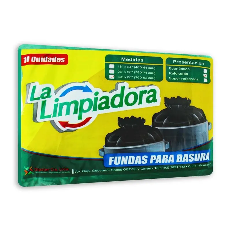 Funda de basura 76 x 92 cm negra x 10 u la limpiadora.