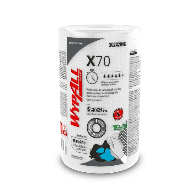 Limpion industrial reutilizable x-70 plus bl rollo x 88 hojas wypall.