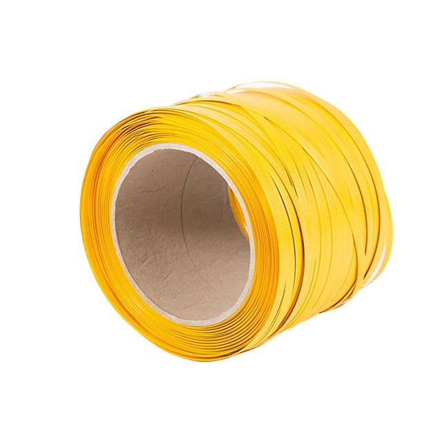 Zuncho plástico mat. virgen 11.8 x 0.75 mm amarillo x rollo 7 kg gen.